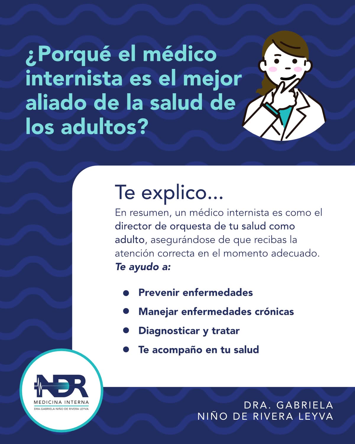 La Dra. Gabriela Niño de Rivera Leyva es una especialista en Medicina Interna y Educadora en Diabetes.